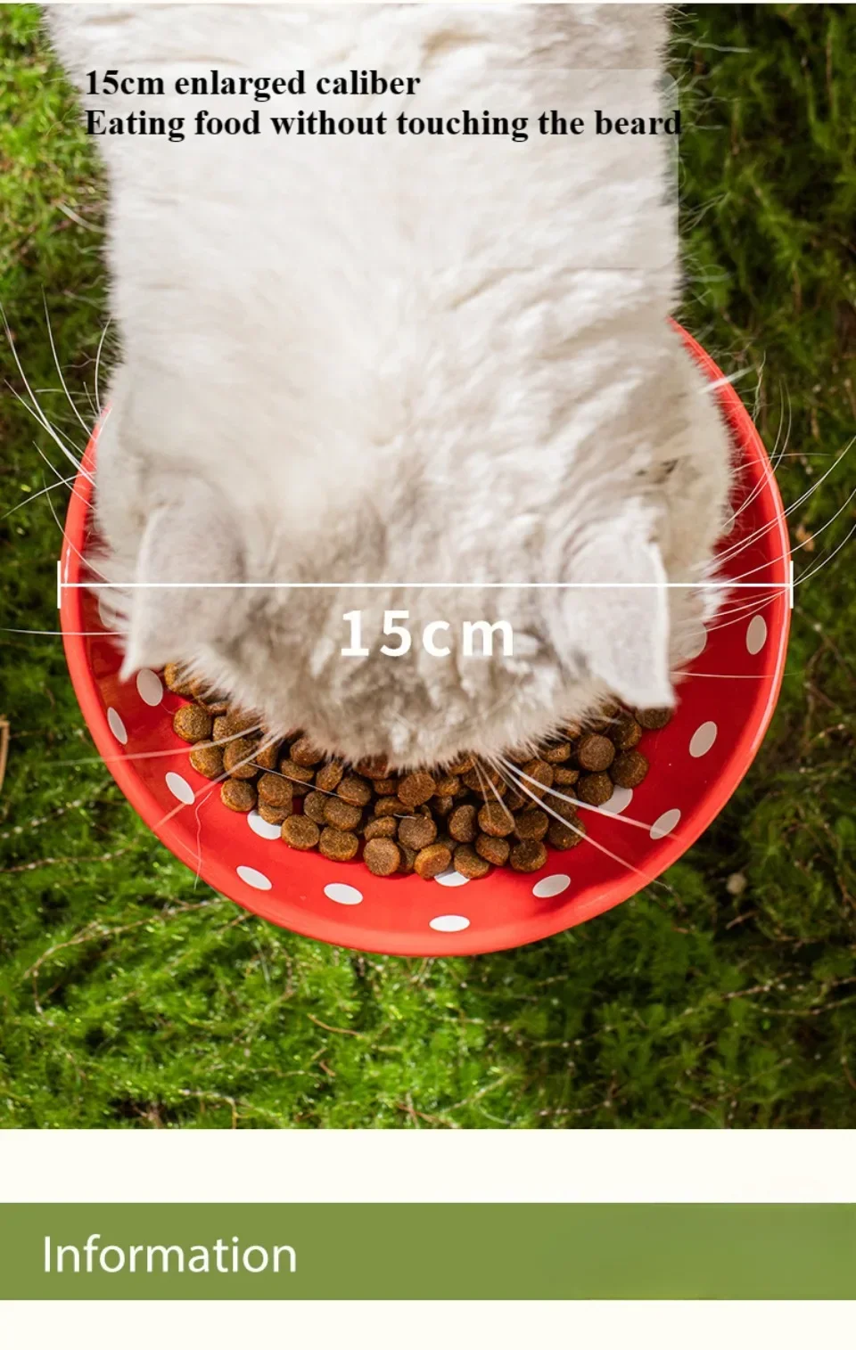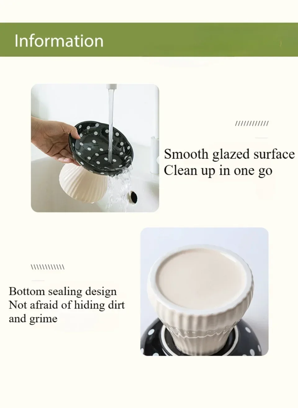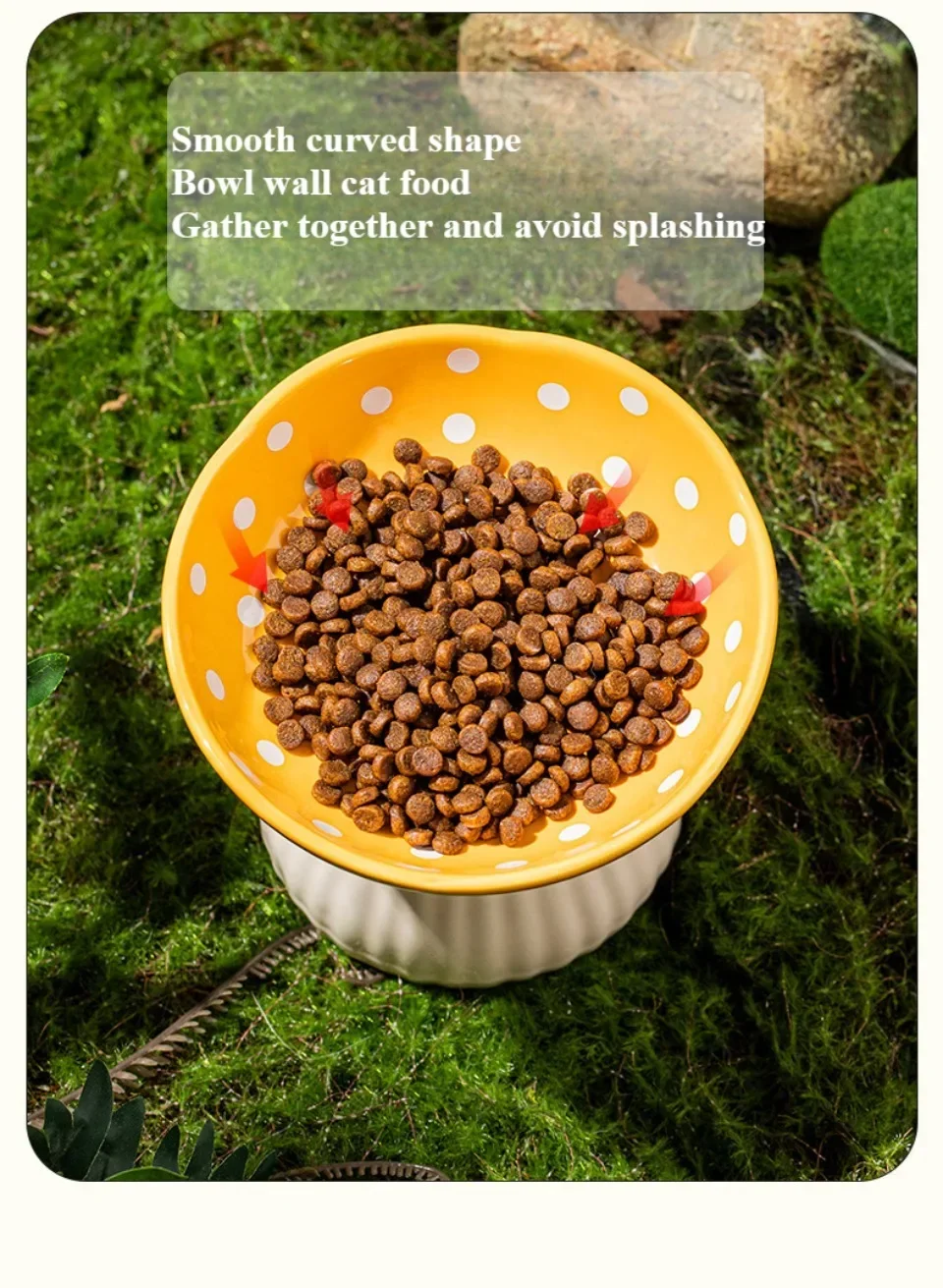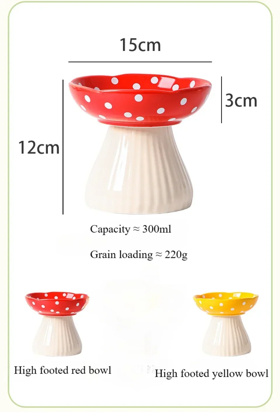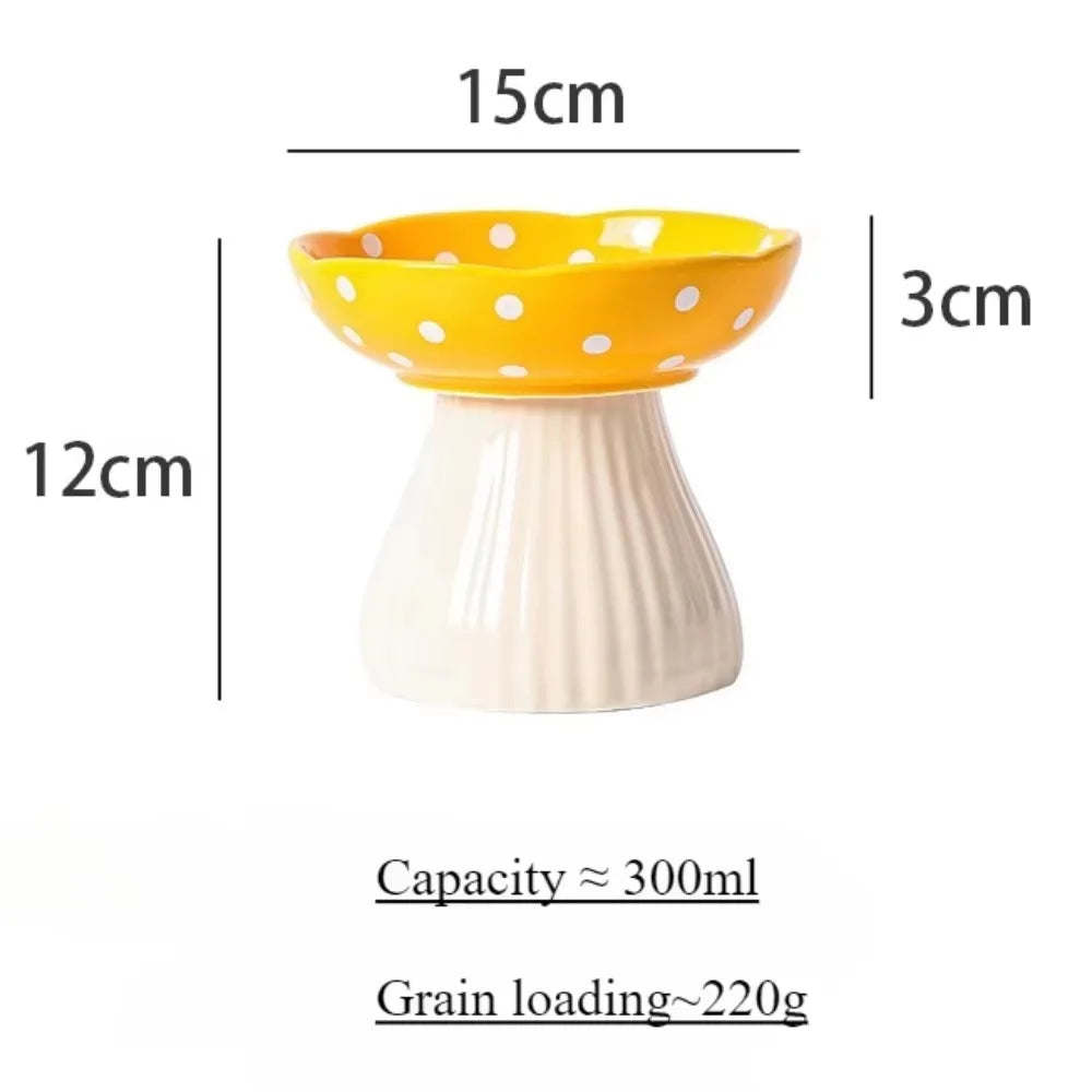 NobleKitty Mushroom Ceramic Cat Bowl – Cute Elevated Feeder with Polka Dots for Cats & Small Dogs