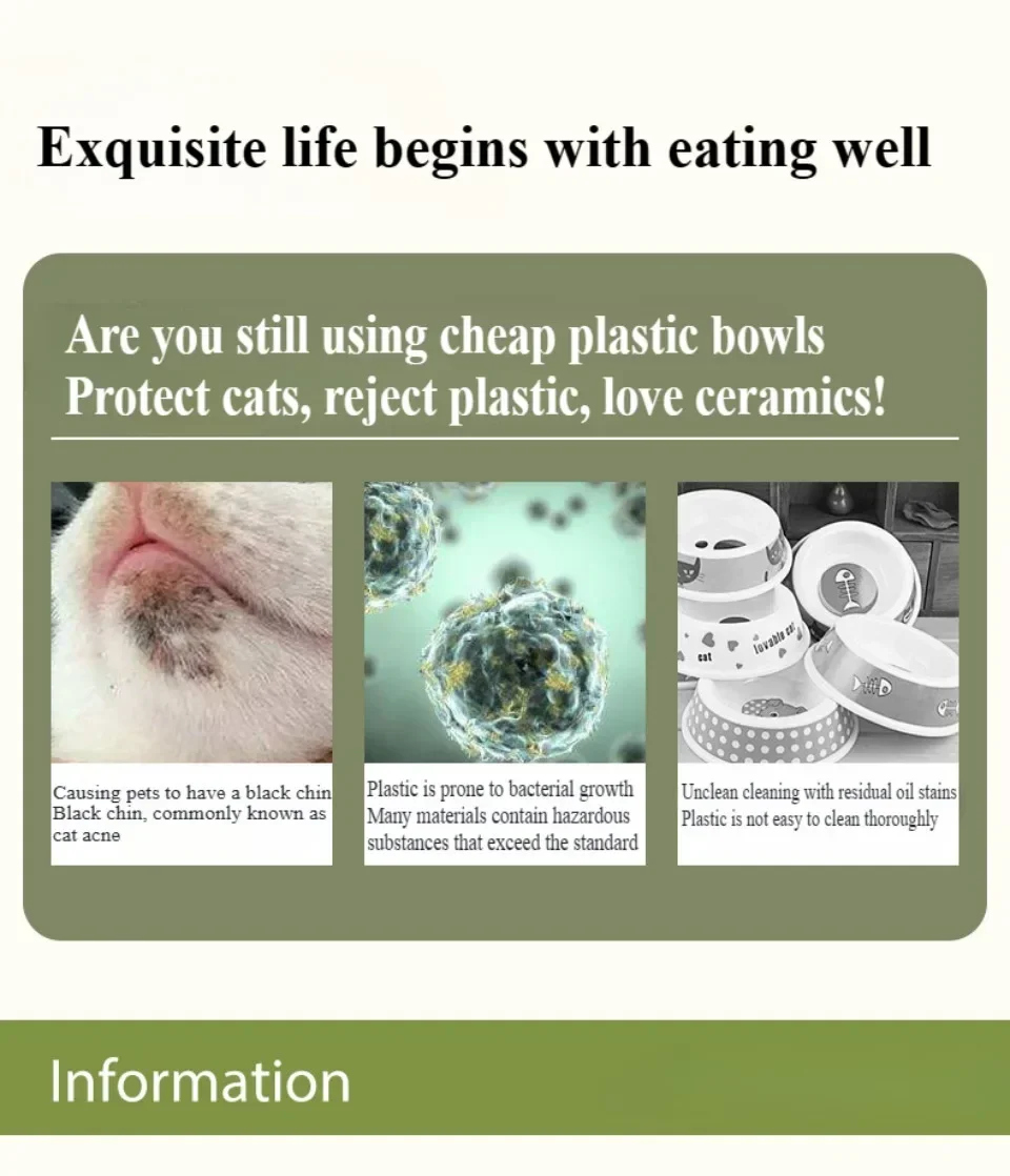 This modern minimalist ceramic cat bowl is crafted from high-temperature fired ceramic — no black chin, no hidden bacteria.